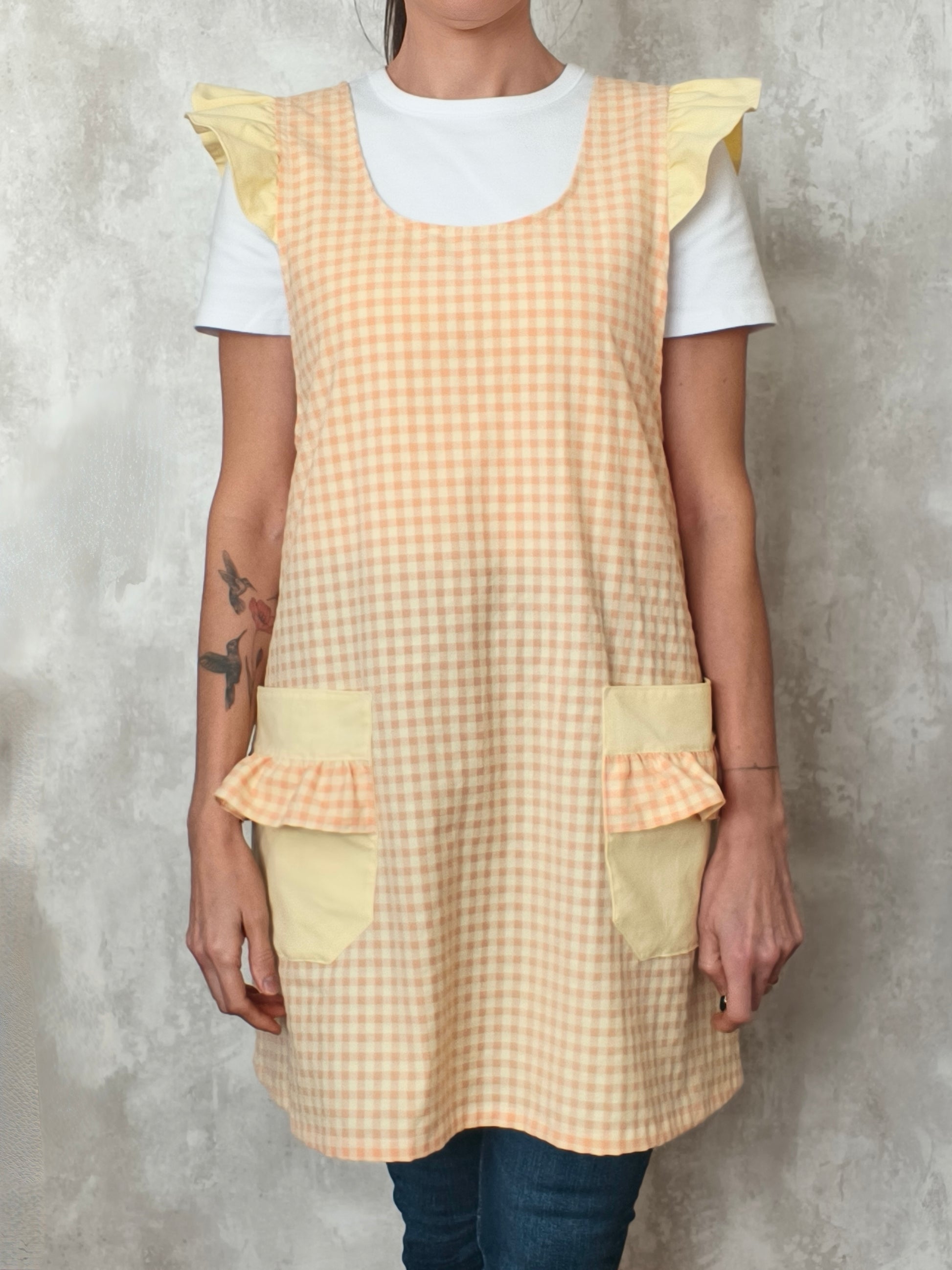 - Estampado: Vichy vainilla y amarillo pastel liso.