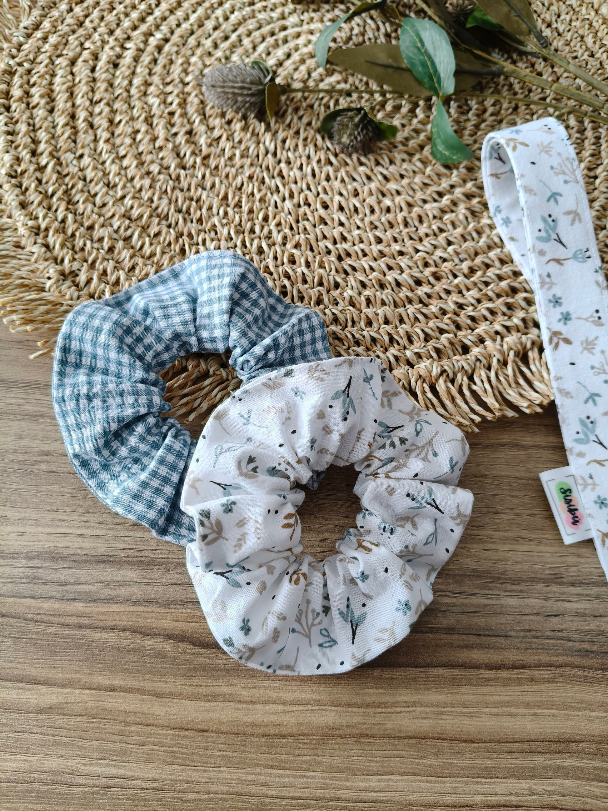 Coletero en estampado de flores o vichy mini verde antiguo.