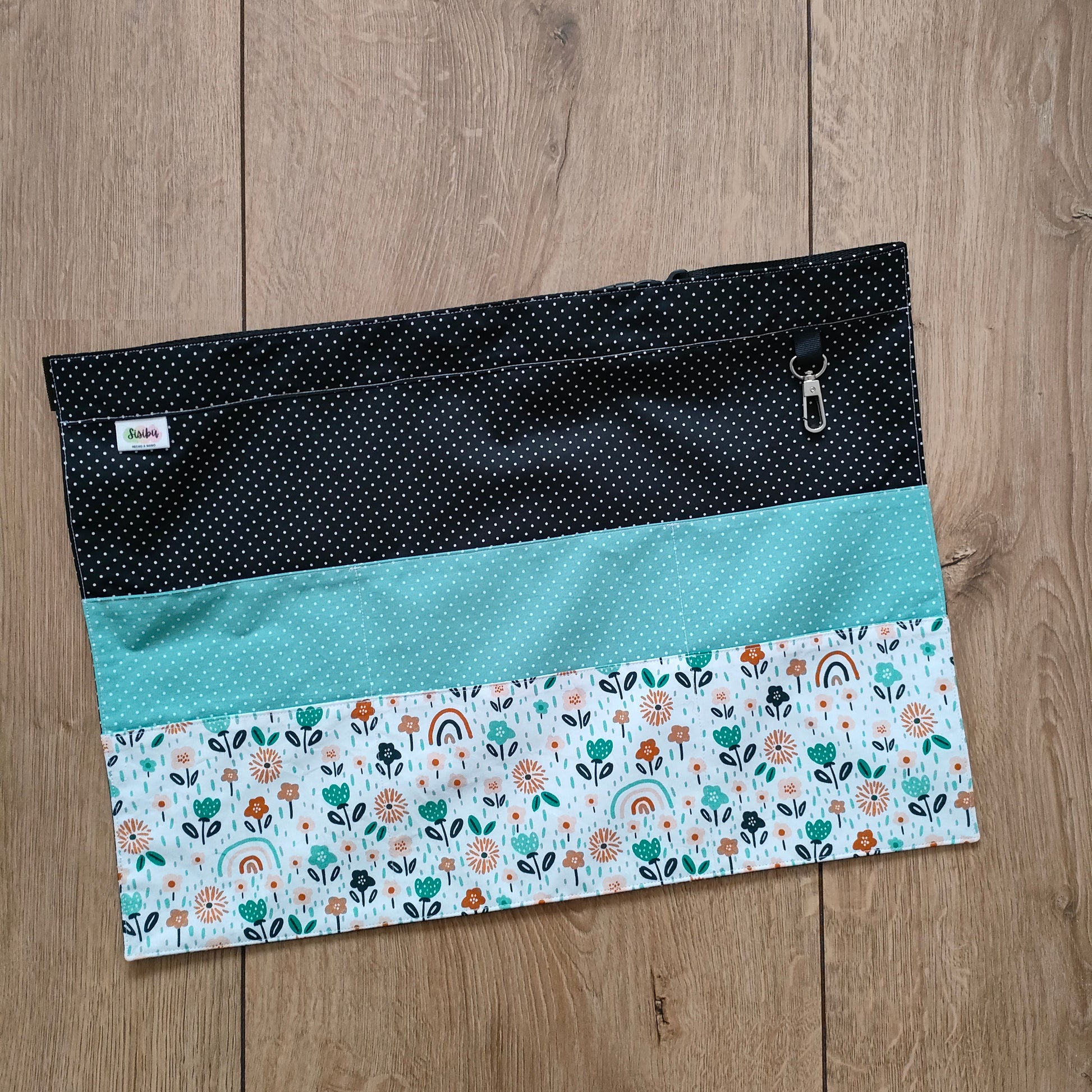 6 bolsillos. 2 bolsillos de 15x12,5cm, 1 bolsillo de 18x12,5cm, 2 bolsillos de 15x21,5cm, 1 bolsillo de 18x21,5cm