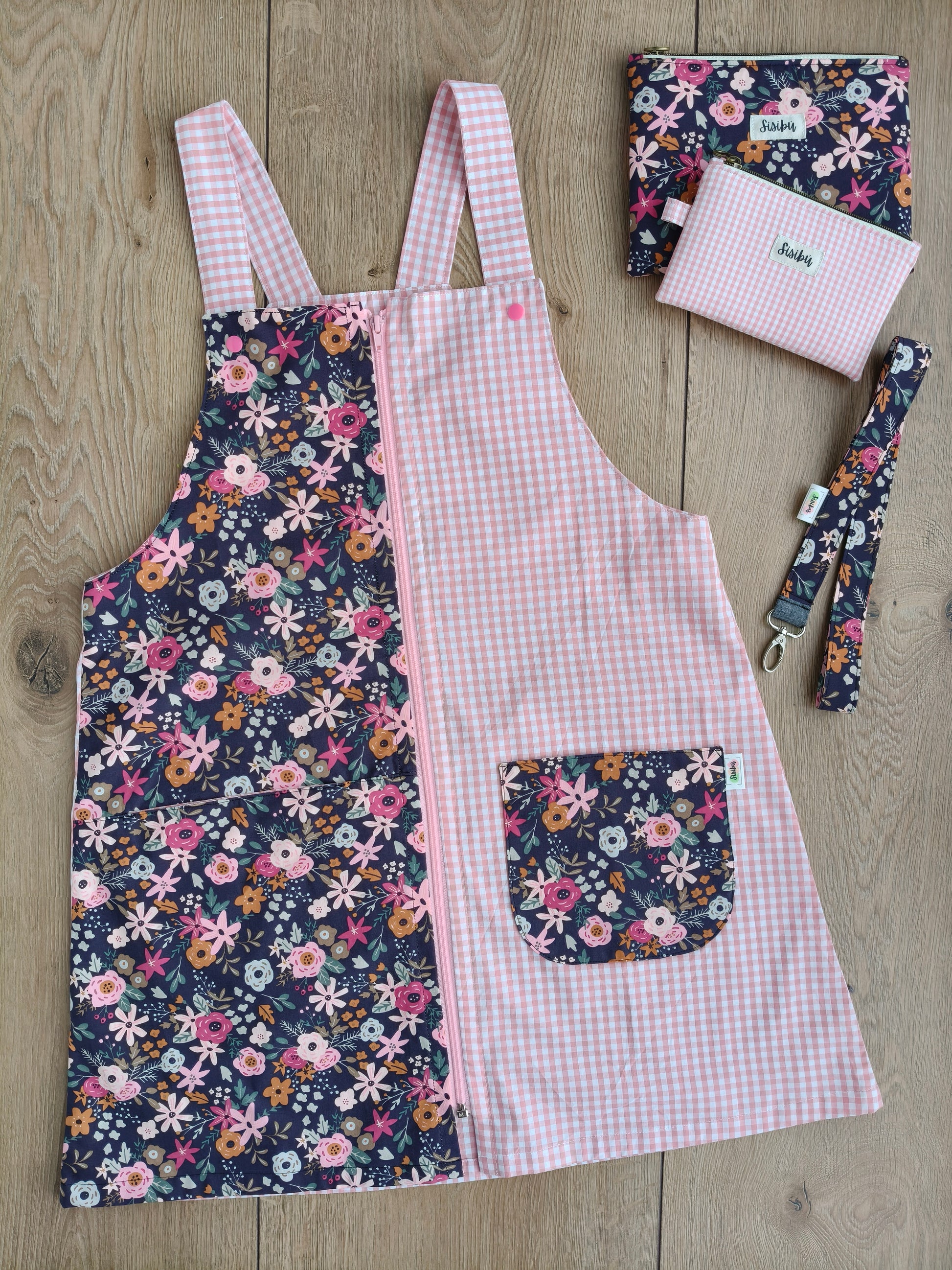 Estampado: Lateral flores y vichy rosa.